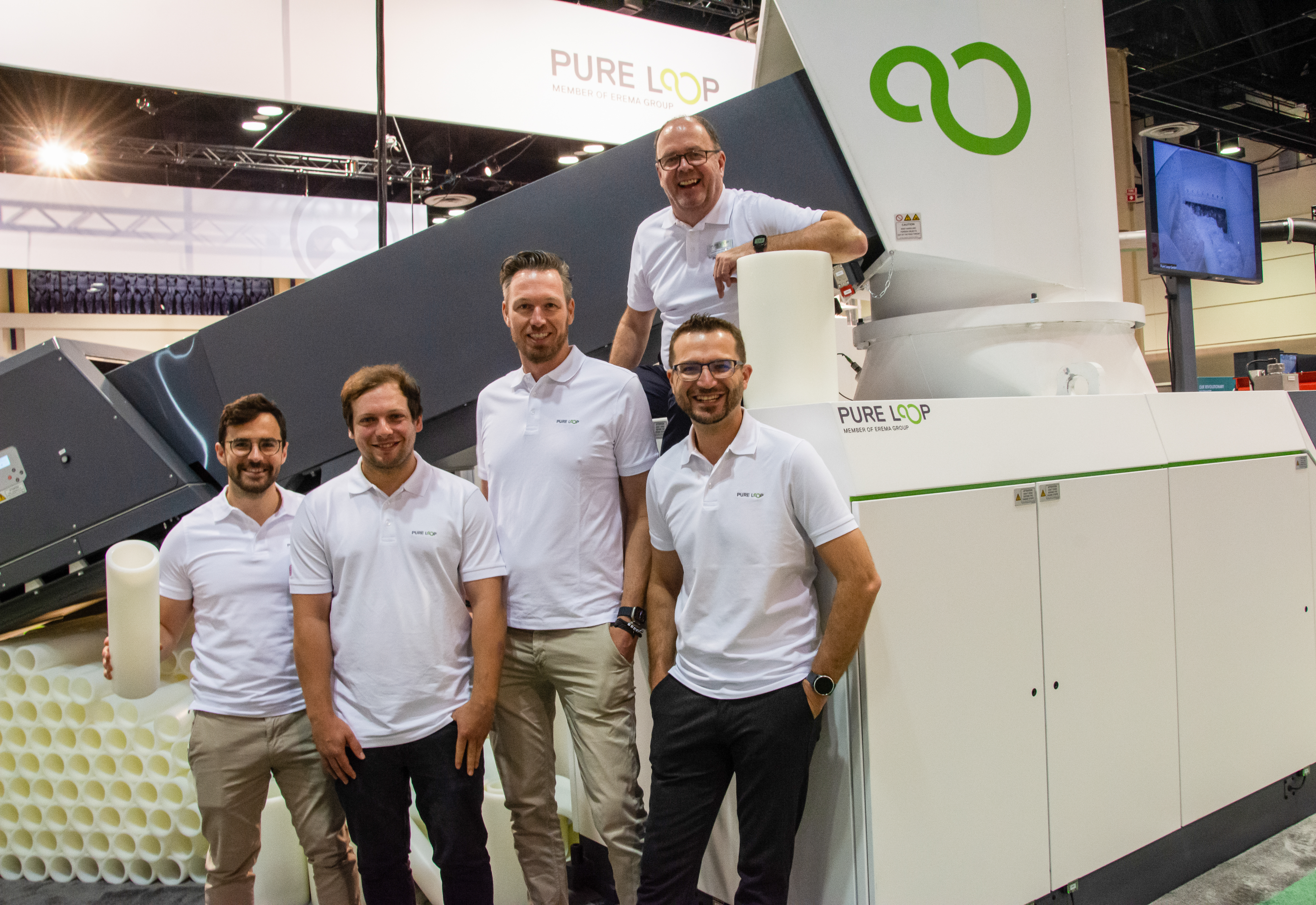 The PURE LOOP team is highly motivated at the opening of this year's NPE. Manfred Dobersberger, Managing Director at PURE LOOP (at the top in the picture), emphasizes the importance of the American market for the company, and is looking forward to discussions with visitors to the stand.